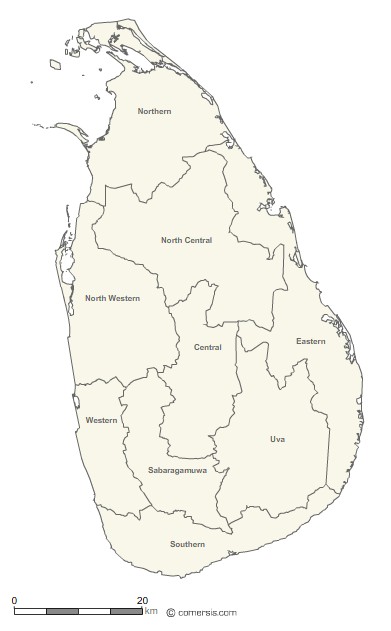 Customizable map of the 9 provinces of Sri Lanka, for PowerPoint or Impress.